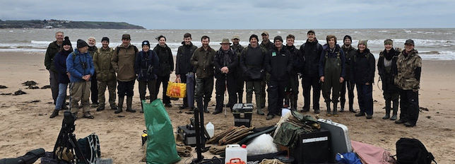The Oystercatchers at Dawlish Warren have become increasingly difficult to catch over the past few years. This is principally due to the flock no longer roosting in the recharge area due to a change in beach profile. The flock now roosts almost exclusively on finger point itself, a much more complex site to cannon-net on. Birds can approach a possible net set from all directions; the mix of species and numbers is less predictable, and the site covers on some of our workable high tide series. After recces last winter and another in October, the group leaders formed a plan to catch on finger point in October, which sadly had to be cancelled due to weather, but we were back there in early November for an attempt.